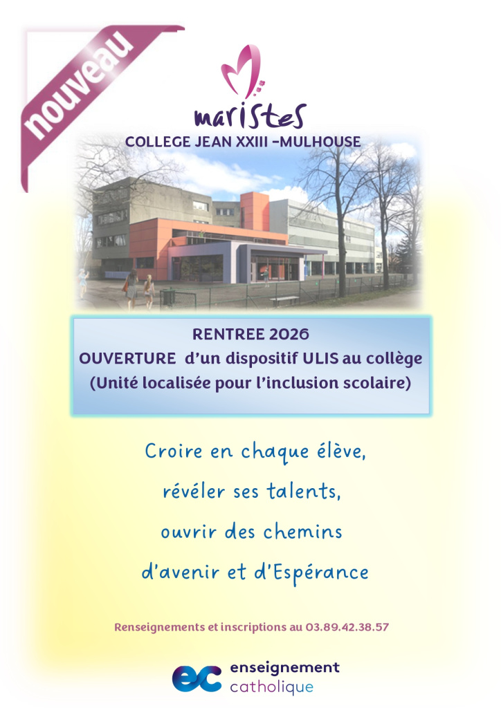 Le Collège Jean XXIII – Mulhouse ouvre un dispositif ULIS (Unité Localisée pour l’Inclusion Scolaire).